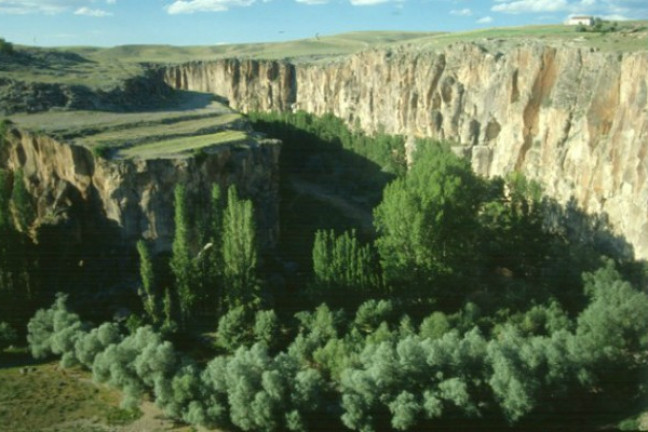 The Ihlara Valley was created by the cracking and collapsing of basalt and lava from mount Hassandag. The Melendiz river found its way through these cracks, eroding..